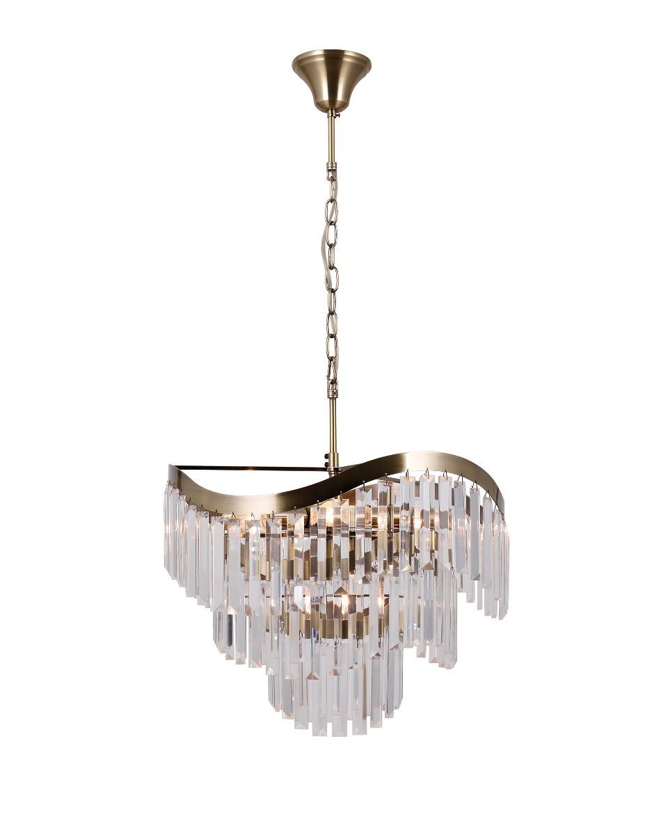 Эта изысканная модель, относящаяся к коллекции Wave, станет идеальным решением для вашего интерьера. Moderli V10768-8P идеально подходит для освещения площадью 16 кв. м. Для достижения оптимальной яркости, производитель Moderli рекомендует использовать лампы накаливания с цоколем E14 и мощностью 320 Вт. Данная модель изготовлена из комбинации Металл и Хрусталь и устанавливается На потолок. Стильное сочетание цветов — Золото и Прозрачный — придают изделию элегантный вид.