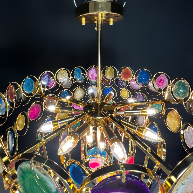 Эта изысканная модель, относящаяся к коллекции Agate, станет идеальным решением для вашего интерьера. ImperiumLoft 186182-26 идеально подходит для освещения площадью 30 кв. м. Для достижения оптимальной яркости, производитель ImperiumLoft рекомендует использовать лампы накаливания с цоколем E14 и мощностью 600 Вт. Данная модель изготовлена из комбинации Металл и Камень и устанавливается На потолок. Стильное сочетание цветов — Золото и Разноцветный — придают изделию элегантный вид.