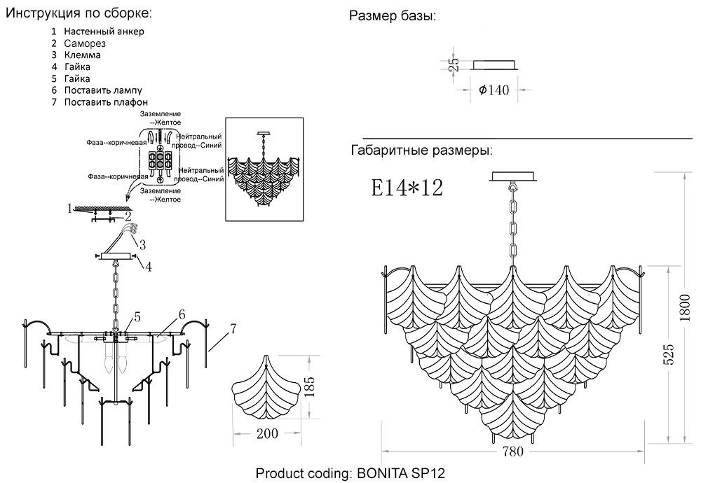 Подвесная люстра Crystal Lux BONITA SP12 🌟 - купить подвесные люстры с доставкой, лучшая цена - Cramer Light