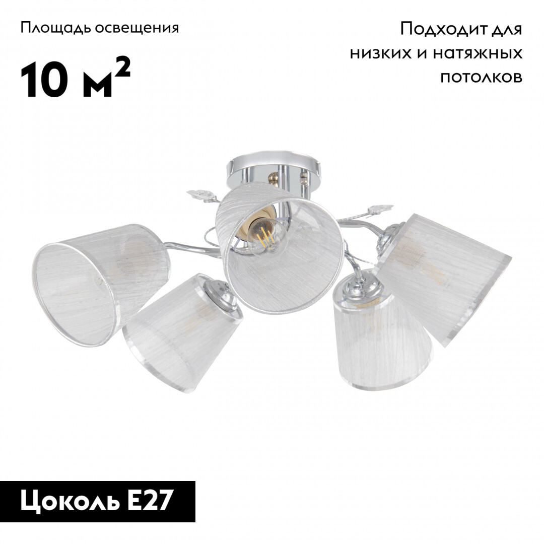 Эта изысканная модель, относящаяся к коллекции Napoli-6820, станет идеальным решением для вашего интерьера. Arte Milano 337646/5 CR идеально подходит для освещения площадью 10 кв. м. Для достижения оптимальной яркости, производитель Arte Milano рекомендует использовать лампы накаливания с цоколем E27 и мощностью 200 Вт. Данная модель изготовлена из комбинации Металл и Ткань и устанавливается На потолок. Стильное сочетание цветов — Никель и Белый — придают изделию элегантный вид.