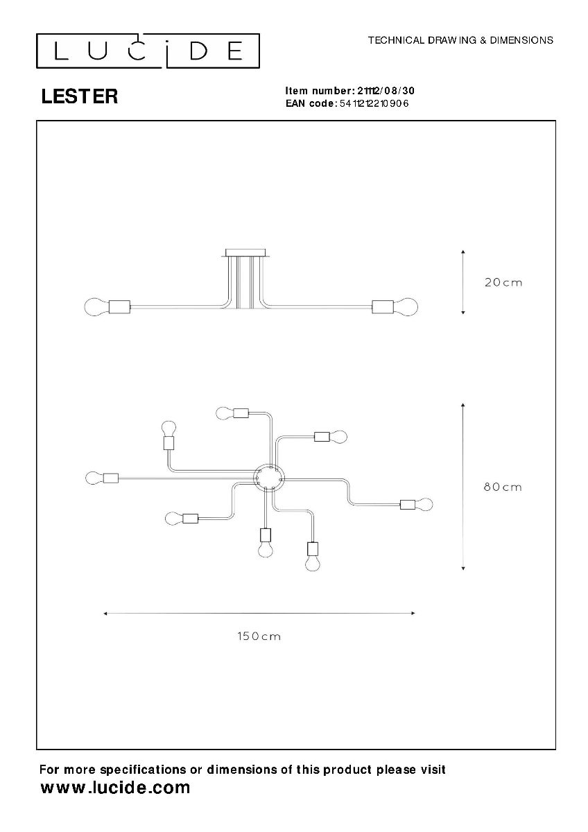 Эта изысканная модель, относящаяся к коллекции Lester, станет идеальным решением для вашего интерьера. Lucide 21112/08/30 идеально подходит для освещения площадью 16 кв. м. Для достижения оптимальной яркости, производитель Lucide рекомендует использовать лампы накаливания с цоколем E27 и мощностью 320 Вт. Данная модель изготовлена из комбинации Металл и и устанавливается На потолок. Стильное сочетание цветов — Черный и — придают изделию элегантный вид.